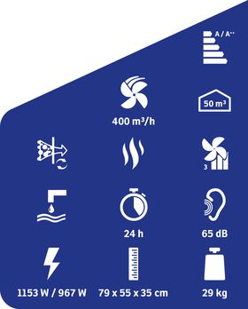 - Luftumwälzung: 400 m3/h
